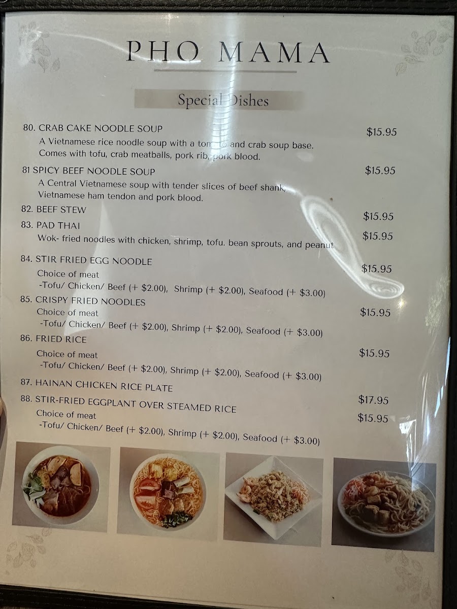 Pho Mama Menu